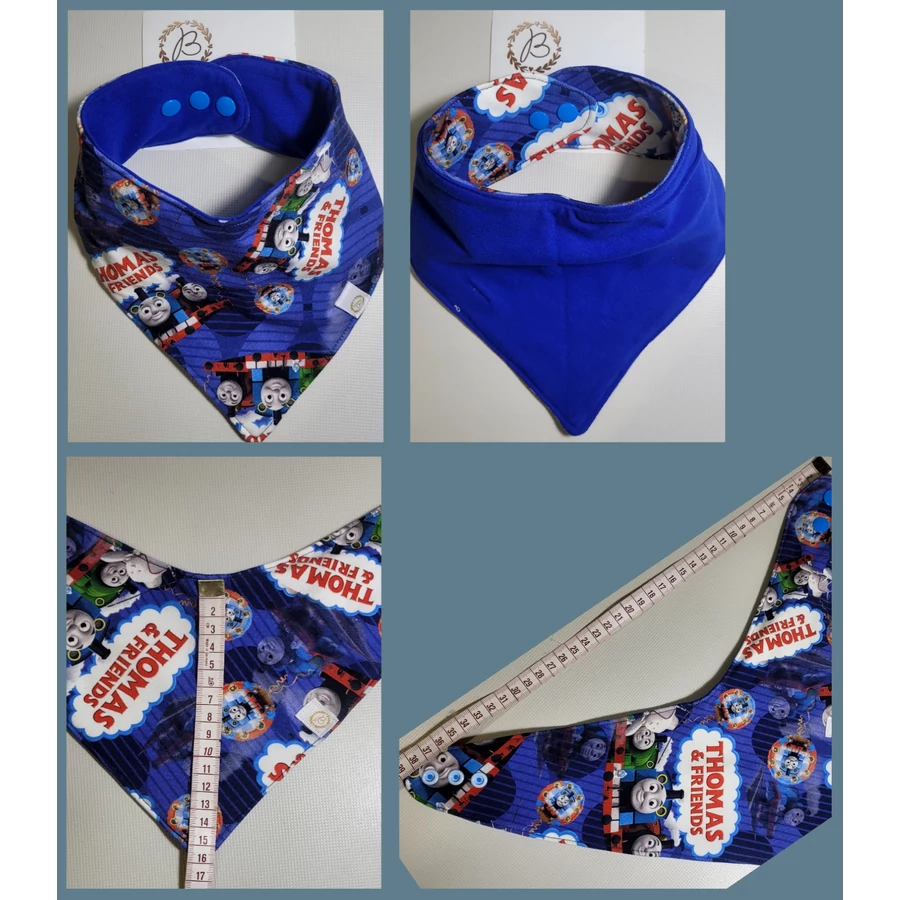 Baba előke/nyálkendő- vízhatlan- 2 oldalas: vonatos+ kék egyszínű