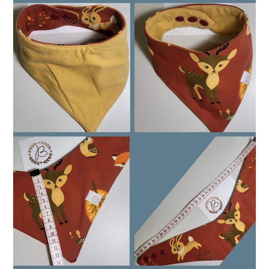 Baba előke/nyálkendő- vízhatlan- 2 oldalas:erdei állatos + mustár egyszínű- kisebb