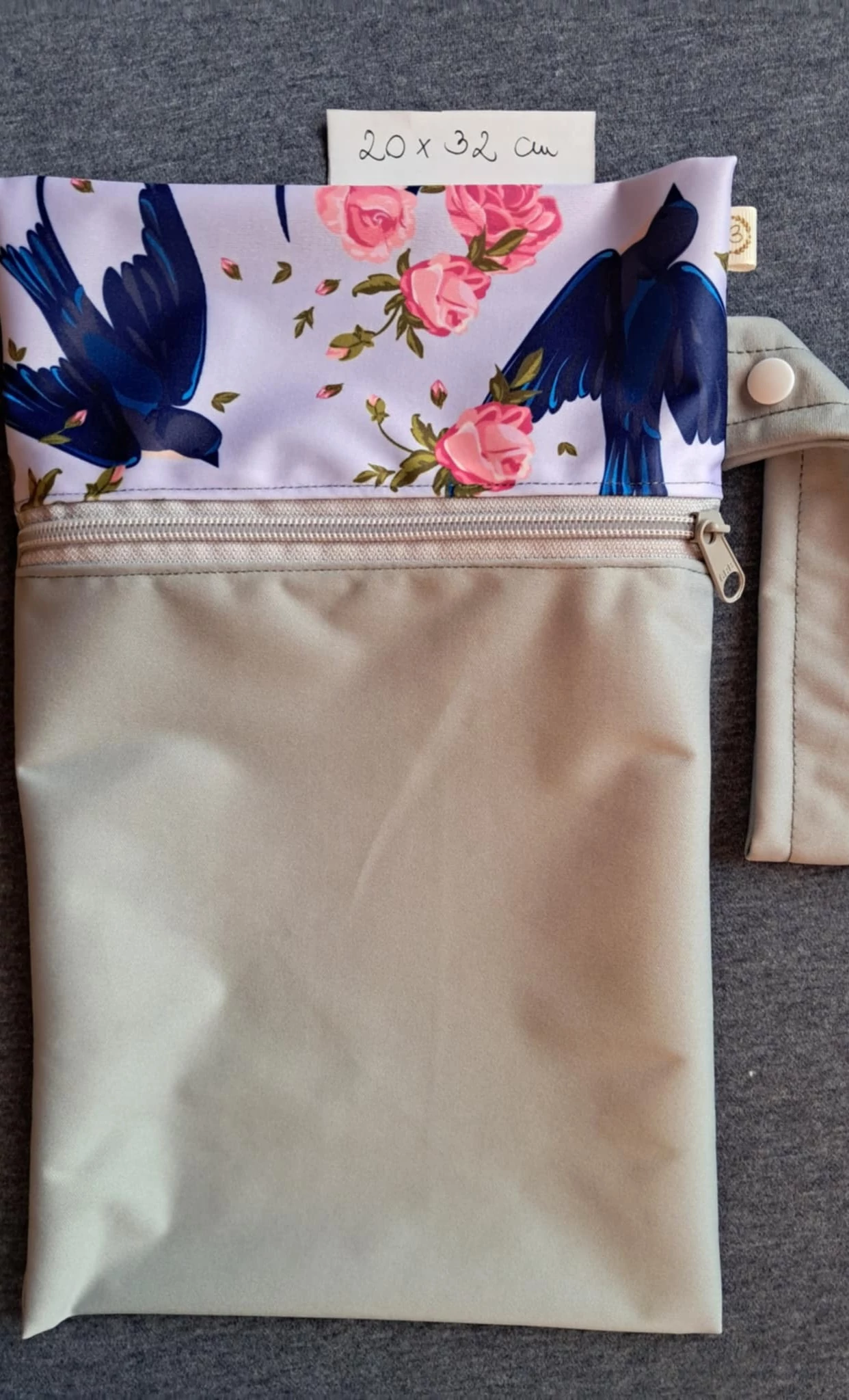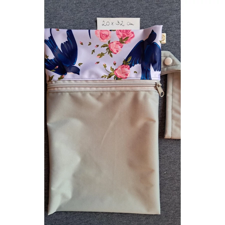 Mosható pelenkazsák- cipzáras, patentos füles- fecskél+ szürke 20cm x 32 cm