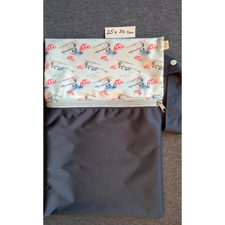 Mosható pelenkazsák- cipzáras, patentos füles- repülőgép+ sötétkék-nagy-25 cm x 37 cm